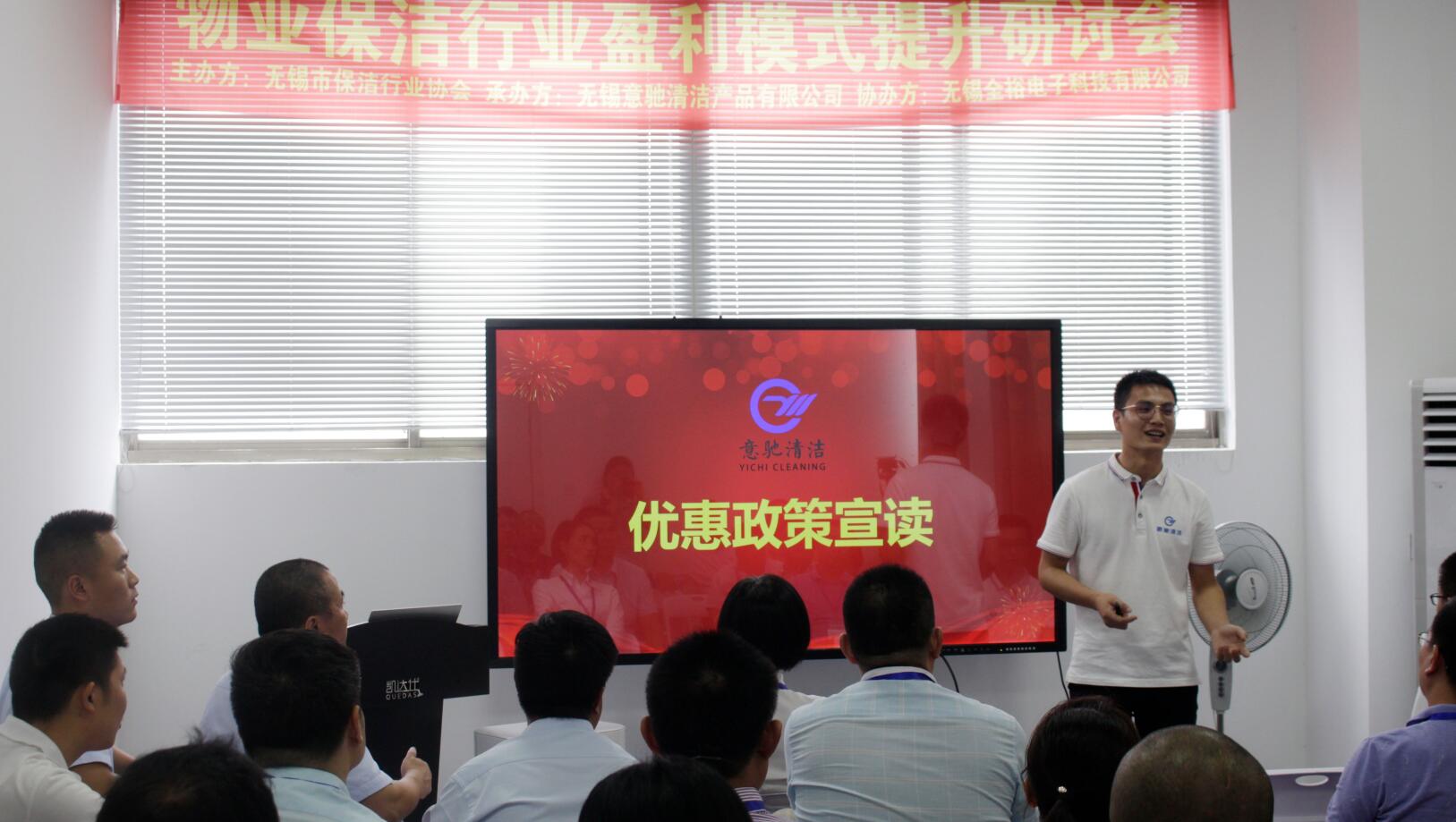 7月26日下午4点,“物业保洁行业盈利模式提升研讨会”圆满结束。此次活动由无锡市保洁行业协会主办,无锡意驰清洁产品有限公司以及无锡全裕电子科技有限公司共同承办。本次活动共有近40位的保洁行业精英参加,共同探讨当下保洁企业利润持续走低、如何改变盈利模式的问题。